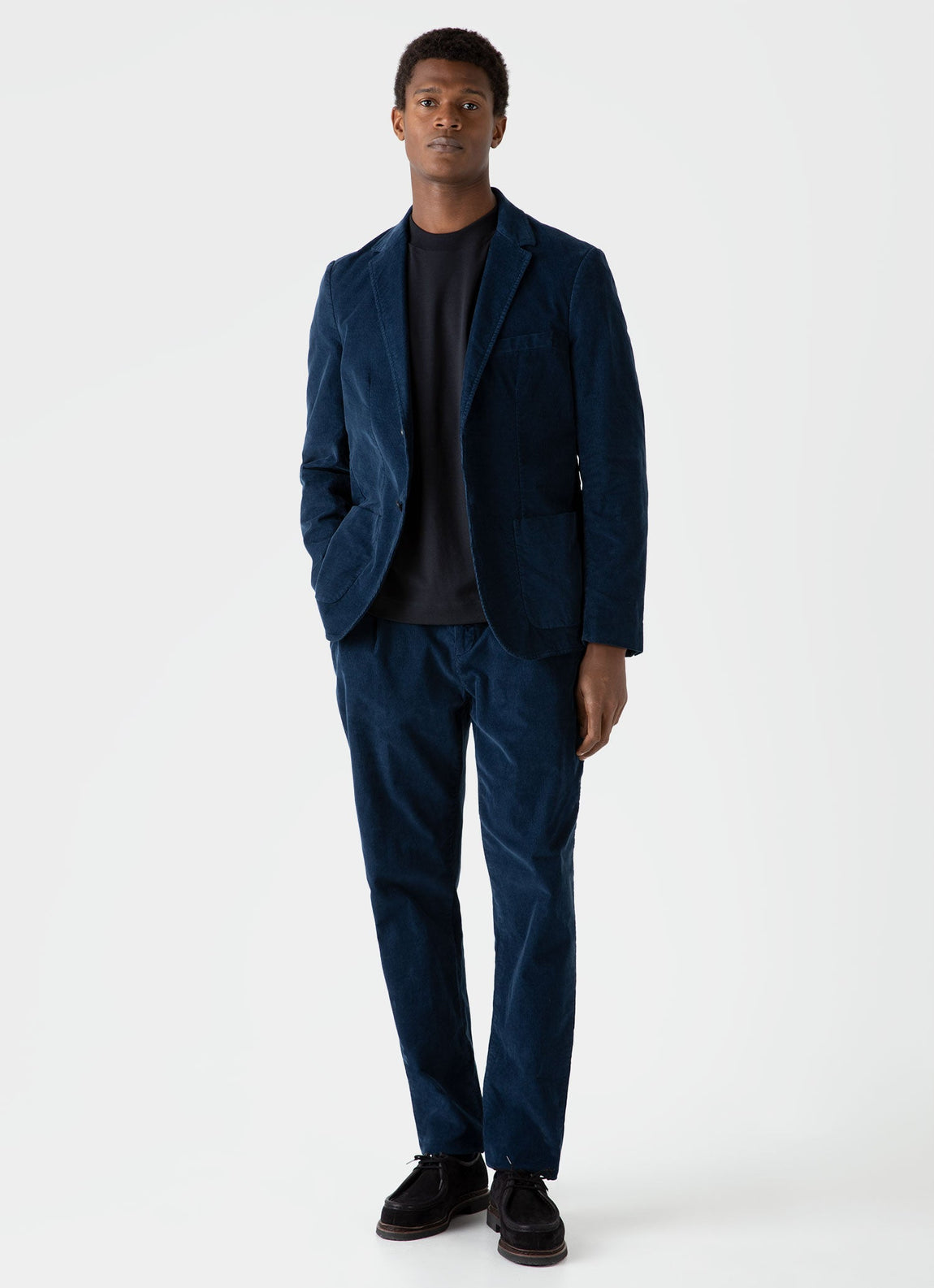A heavyweight T-shirt made with the highest quality long staple cotton, carbon brushed for an extra soft handle. With a contemporary wide-trim crew neckline and a relaxed fit, it's the ultimate layering piece. Pair with our Corduroy Twin Pocket Jacket.