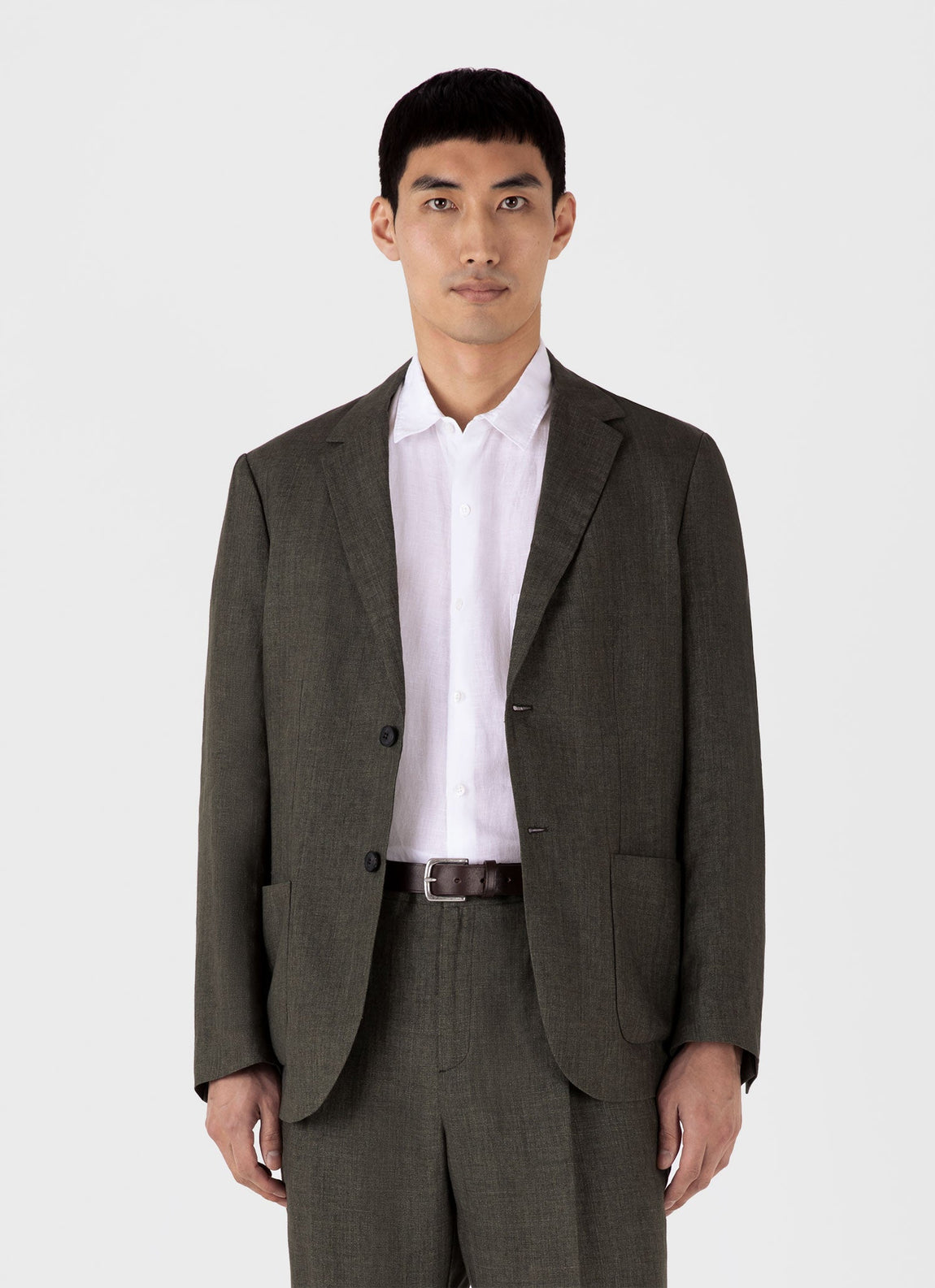 A summer suit with an effortless contemporary feel, crafted in a luxuriously lightweight linen sourced from a renowned Italian mill. The darted body and impeccable cut ensure it is smart and timeless, while the half lining gives ease and comfort. The matching trousers are cut with a regular fit and single pleat front, and are finished with a tailored waistband. An ideal choice for a versatile modern suit.