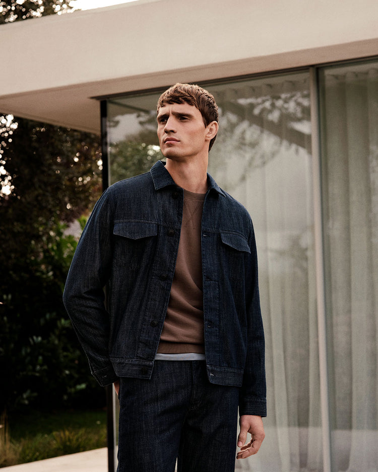 An elevated, tailored take on the classic bomber jacket, crafted from exceptionally soft boiled wool jersey woven by a renowned Italian mill. Warm and substantial, it features a clean, contemporary silhouette with shoulder darts, a wool rib neckline, and a hidden placket. Designed with a modern fit, side seams, and welt pockets – an effortlessly refined outer layer for the colder months.